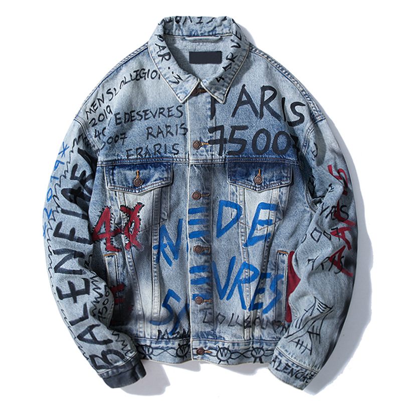 Pictures. Jeans jacket men japan style graffiti vintage patch designs denim jackets for men hip hop streetwear. Aboorun mens hip hop denim jackets oversized graffiti painted jeans jackets men's brand ripped coat streetwear x12821 cheap denim jacket graffiti.