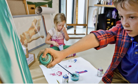 Street artist painting colorful graffiti on wall.