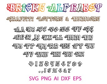 Colorful graffiti font alphabet letters.