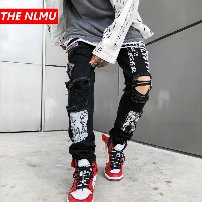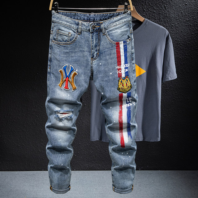 Our light wash graffiti print ripped jeans are a must have this season! Mix & match this pants with other items to create an avatar that is unique to you! There are big promotions for graffiti jeans on single's day sales. High quality straight fit jean overalls harajuku washed out denim trousers.